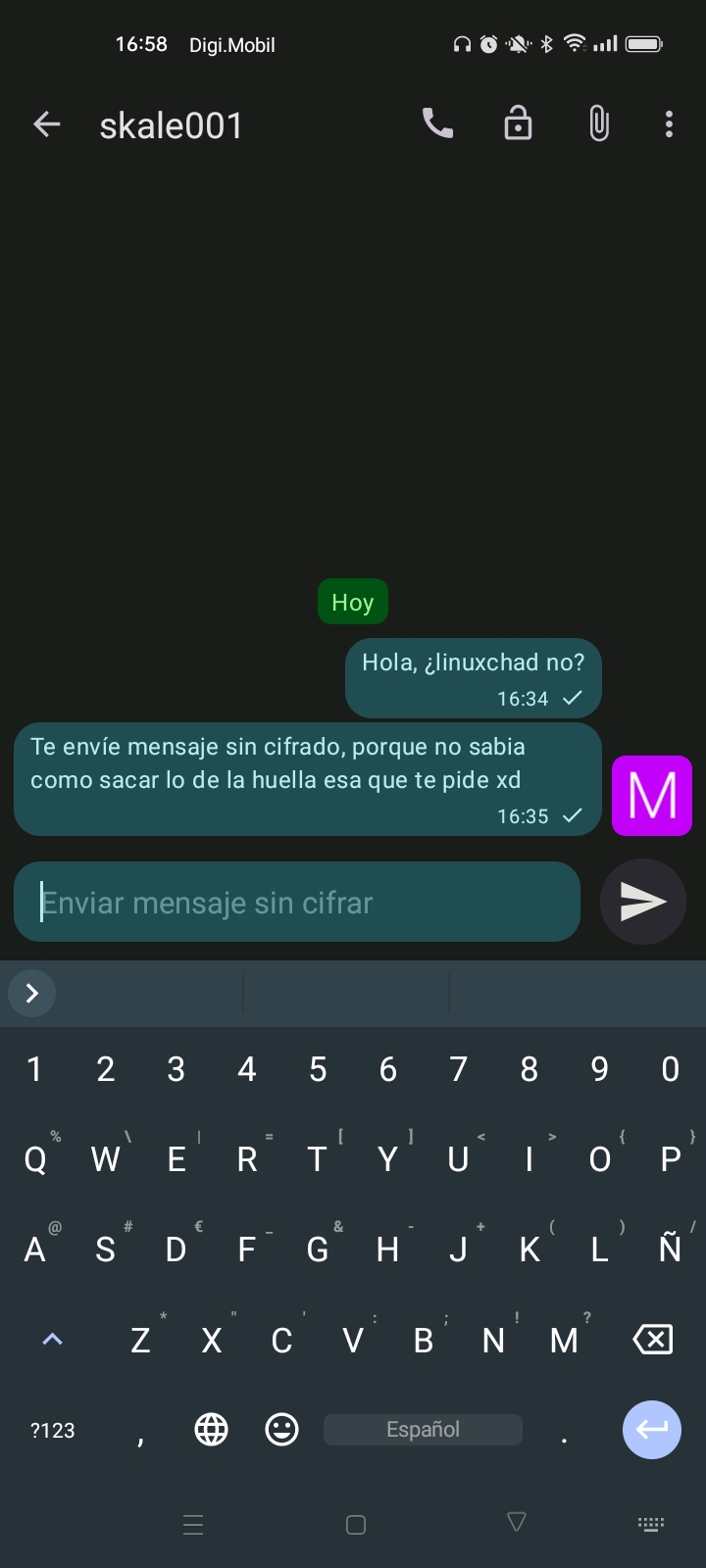Oye, ¿por que tu cuenta no tiene claves? Es imposible mandarte mensajes cifrados