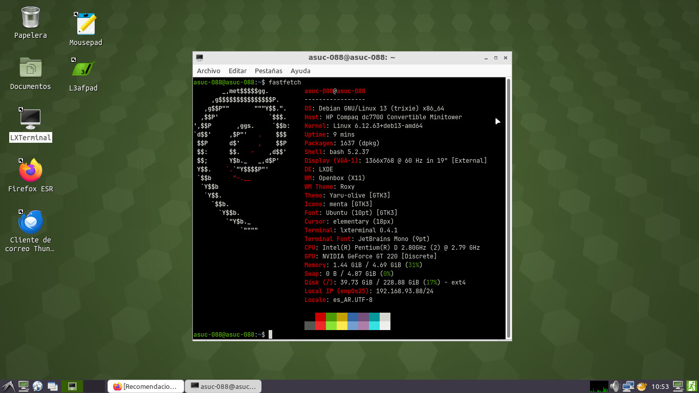 El equipo es el mismo del post anterior: [Parte 2] Pentium D con mejora, i3 y Debian GNU/Linux - nº 7 por ColmilloGris