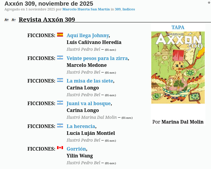 - https://axxon.com.ar/ es la primera revista de ciencia ficción en español. Siguen publicando números